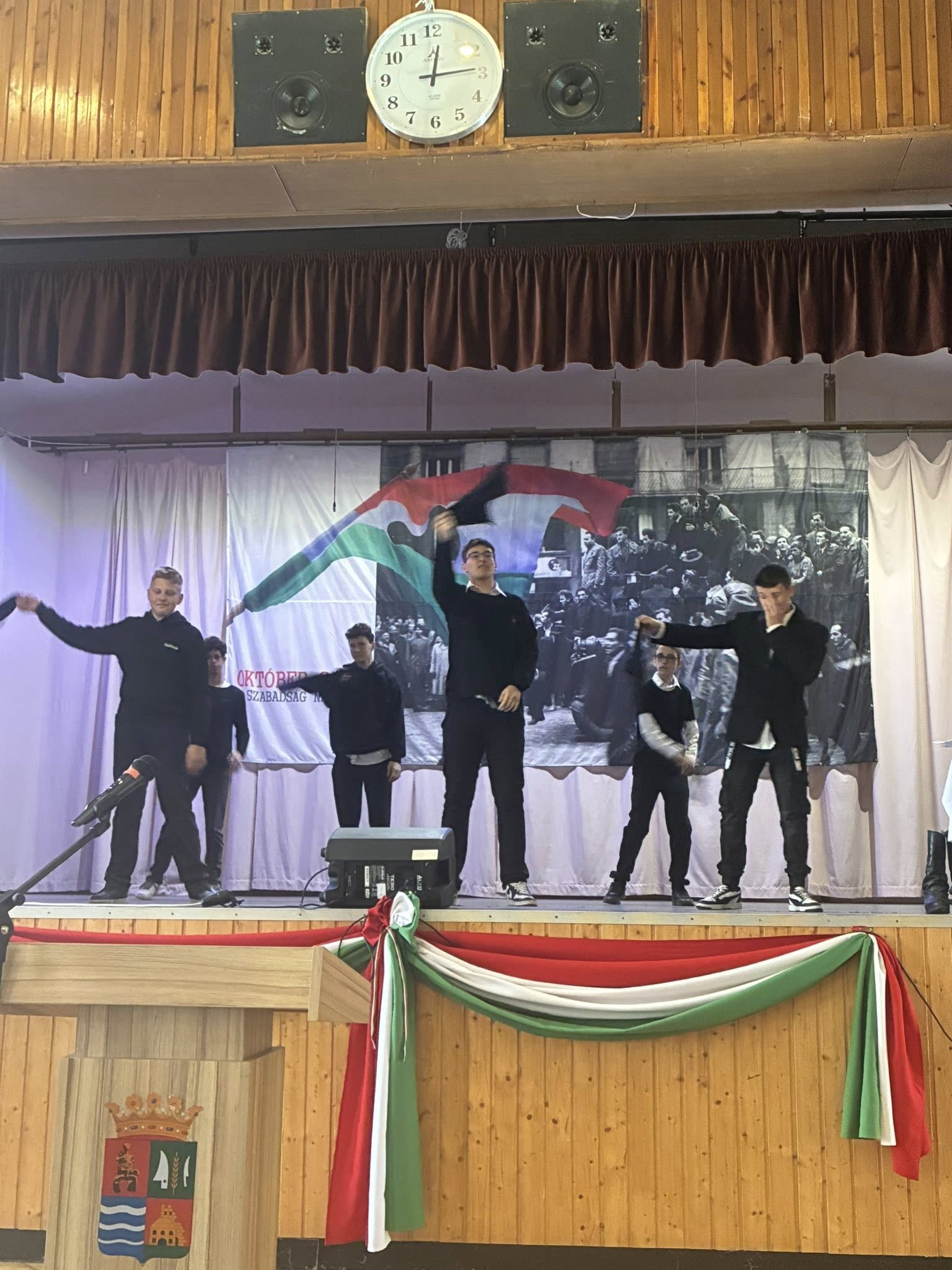 A magyar történelem egyik legmeghatározóbb eseményére emlékeztünk ma október 22- én, a helyi Művelődési Házban. Oroszné Kosztolányi Éva igazgató helyettes köszöntötte a kollégákat, diákokat, majd iskolánk 8. osztályos tanulói, felkészítőjük, Tóthné Nóbik Mariann osztályfőnök vezetésével egy meghitt, színvonalas műsorral idézték fel az októberi hősök emlékét.