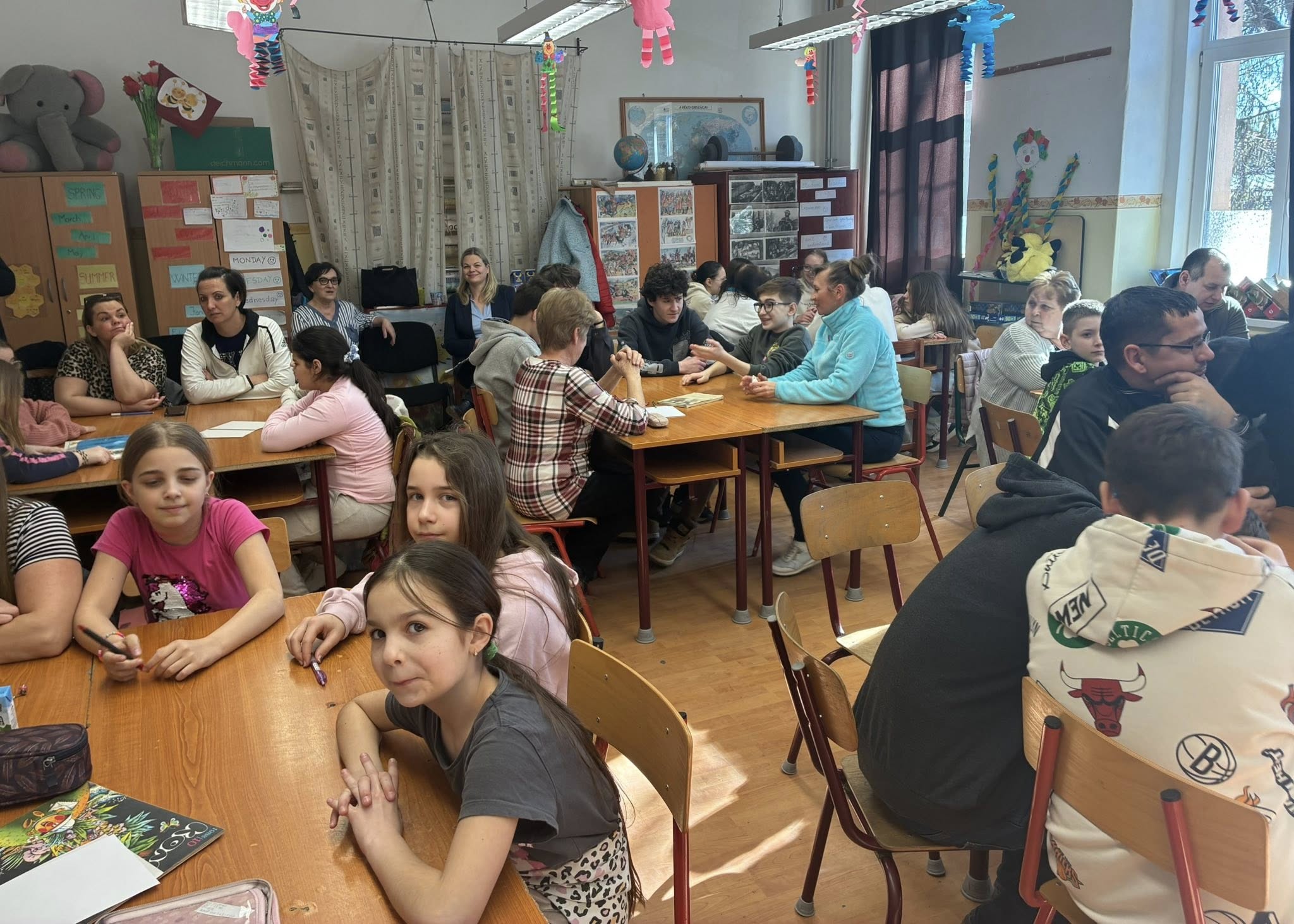 14.00 órától az”Iskolapadban régen és ma”címmel kvíz délutánt tartottak a nyugdíjas pedagógusaink a gyermekeknek. Előzetes feladatként a 4.5.6.7.8. osztályokból 4 fős csapatokat kellett kialakítani, plusz még 2 fő felnőttel kiegészíteni.