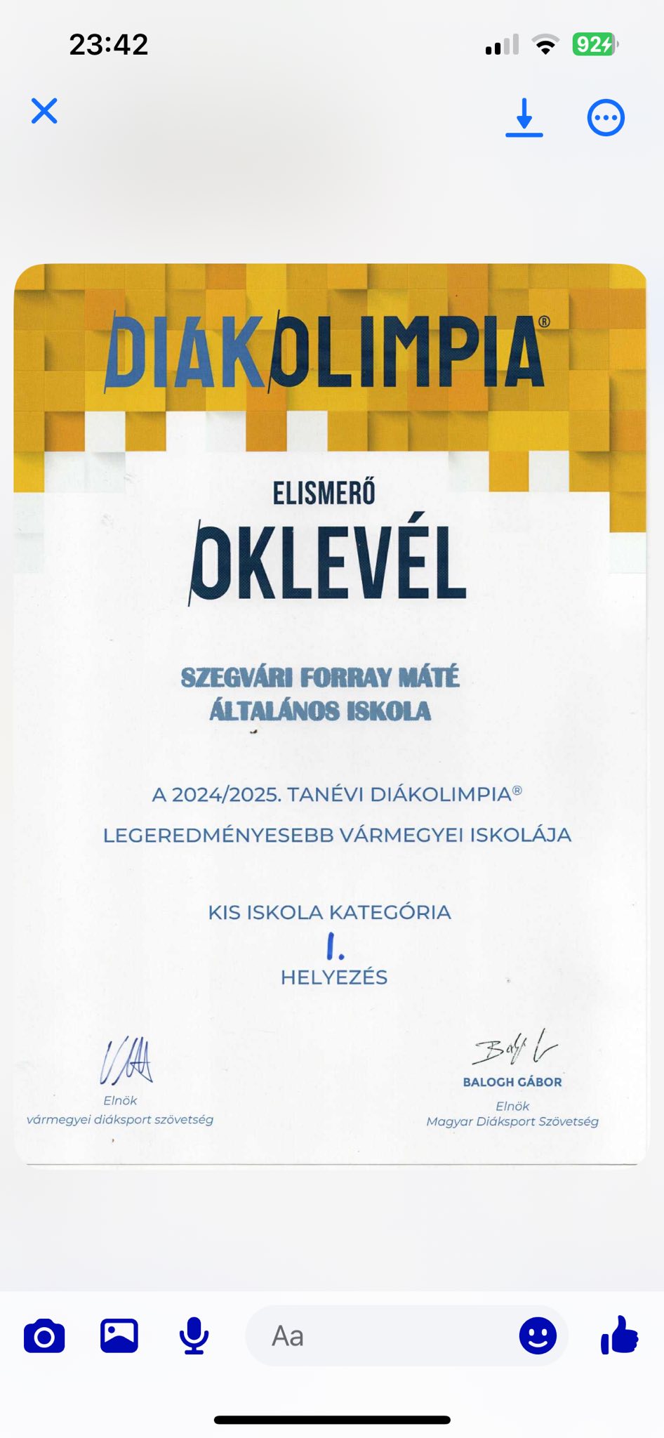 A Csongrád-Csanád Vármegyei Diáksport Egyesület immár hagyományt teremtve ismét elismerte a kiemelkedő munkát végző pedagógusokat, a tavalyi tanév legeredményesebb diákjait, felkészítő pedagógusait és azokat az iskolákat, akik a 2024-25-ös tanévben, akik a legeredményesebben motiválták tanulóikat és vettek részt a Diákolimpia versenysorozatában.